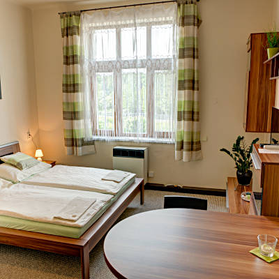 Cena ubytování je závislá na dispozici a vybavení pokojů a je od 450 Kč do 950 Kč/osoba/noc. Hotel nyní disponuje dvěma samostatnými pokoji s vlastním balkonem a výhledem na privátní parkoviště u hotelu. Snídaně nejsou zahrnuty v ceně pokoje, po dohodě je lze samozřejmě připravit.